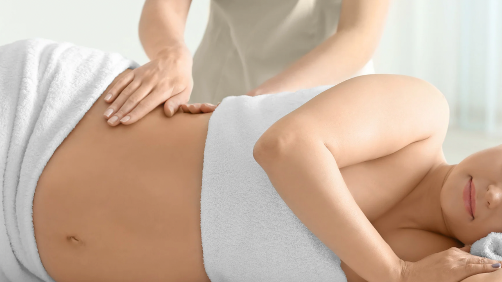 お腹に負担をかけず、身体を温めながら、肩こり・腰痛・脚のむくみなど妊娠中の不快感をやわらげる施術です。