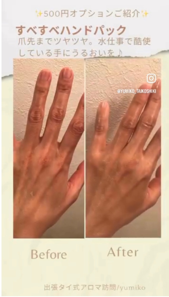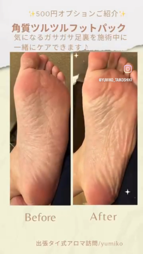 | ワンコイン ケア500円 | 爪まですべすべハンドパック or角質つるつるフットパック (手足の乾燥が気になる方に!) |