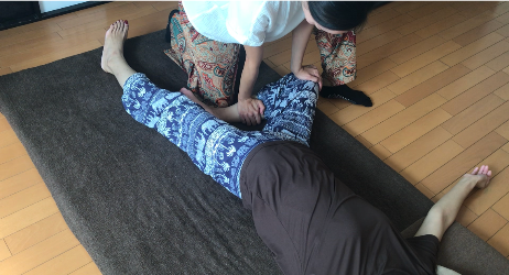 オイルでじっくり深層のコリをゆるめ、巡りを整えた後に、タイ式整体で関節の可動域を広げていきます。